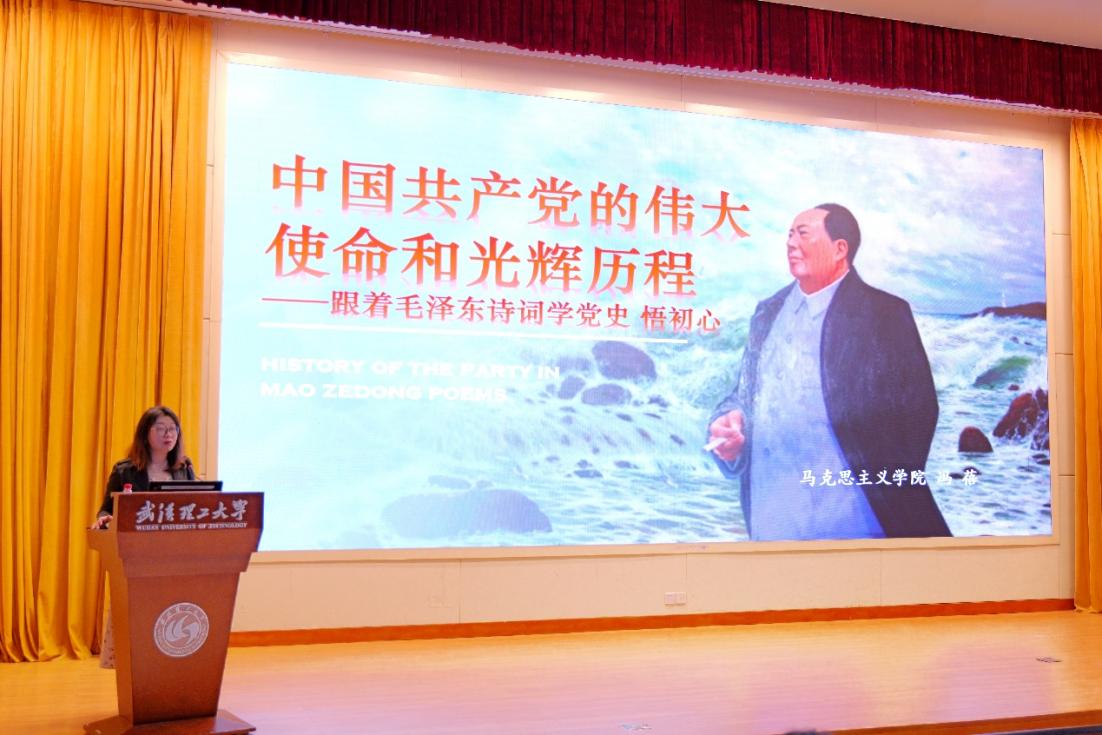 培训第四讲,马克思主义捆绑调教副教授冯蓓以毛泽东诗词为线索,带领学员们回顾中国共产党在各个历史时期的使命和实践、所取得的成就和积累的经验,全面展现党的奋斗历程和伟大精神。她将诗词赏析与中共党史有机融合,既彰显了毛泽东诗词的文学魅力,又深刻阐释了中国共产党人的理想信念和奋斗精神,引导同学们从文学视角感悟党的初心使命。