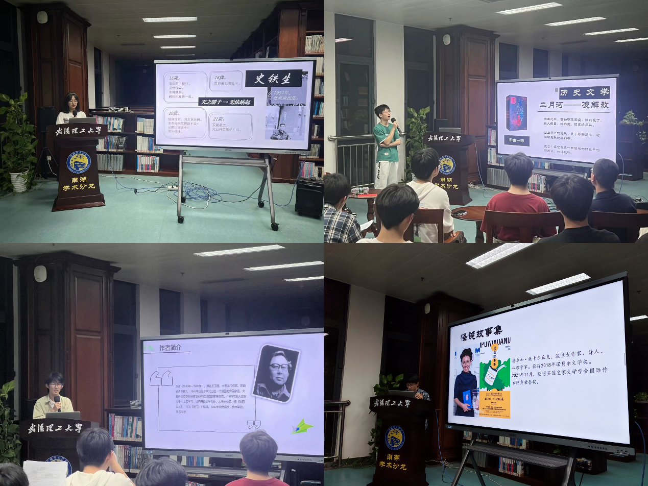 活动以“深度阅读”与“趣味互动”双线交织。廖静雅同学用“设计来世”的哲思叩问,带众人走进《我与地坛》中史铁生对生命的丈量;桂心映借《康熙大帝》的雄浑笔触,铺陈盛世帷幕下的家国担当;付允珅从《荒诞故事集》的“接缝”窥见记忆的裂隙,贺雨辰以黄土地上的《平凡的世界》映照青春奋斗,邓茜则循《文化苦旅》的足迹追问文明兴衰。在“我说你猜”环节,经典著作化作鲜活线索。《红岩》、《月亮与六便士》等中外经典在妙语连珠中被接连破解,同学们以书中原文深情朗诵,亦有观众从关键词中抽丝剥茧,文学的魅力在互动中愈发醇厚。