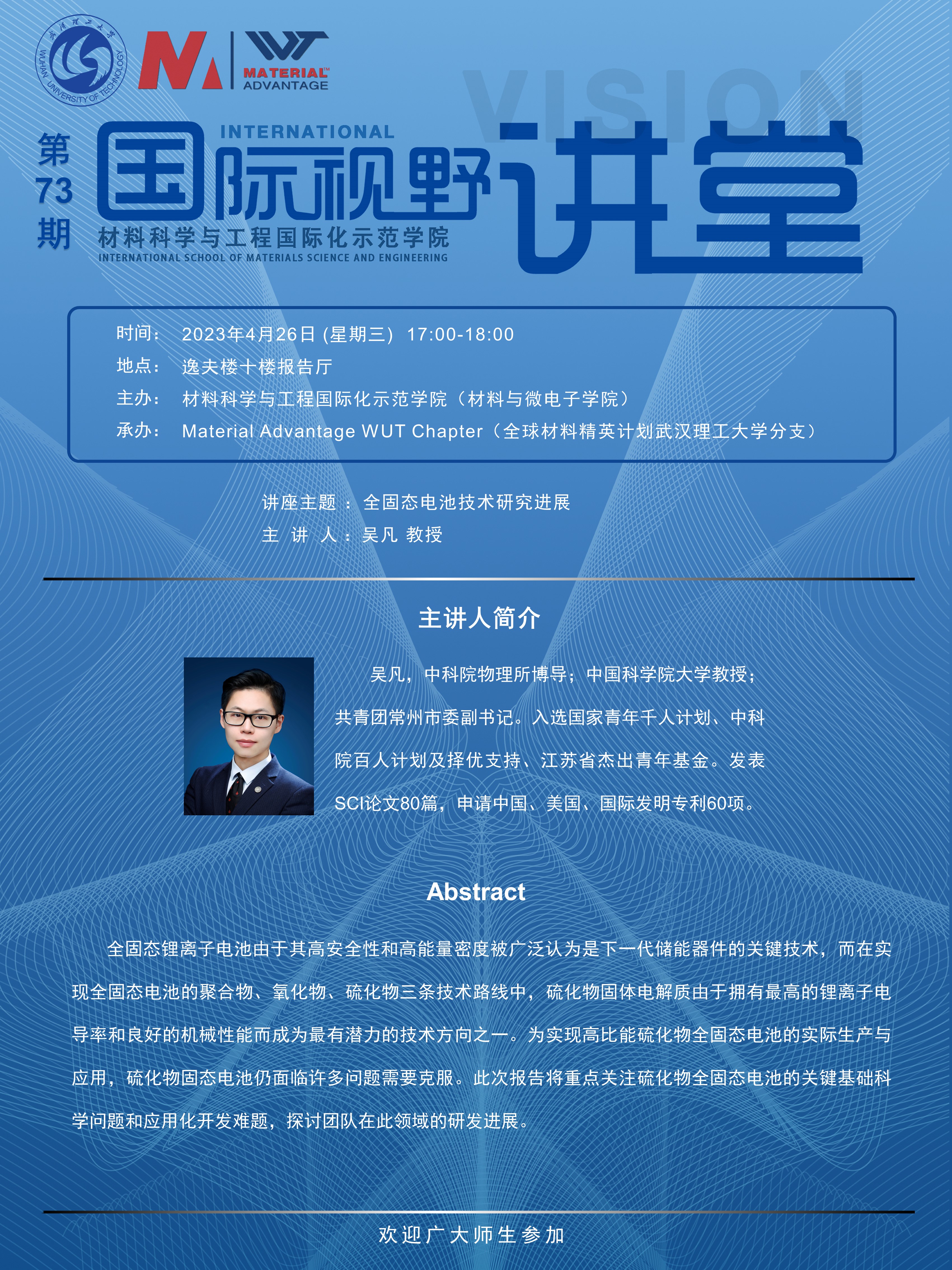 【国际视野讲堂】第73期:吴凡教授学术报告会
