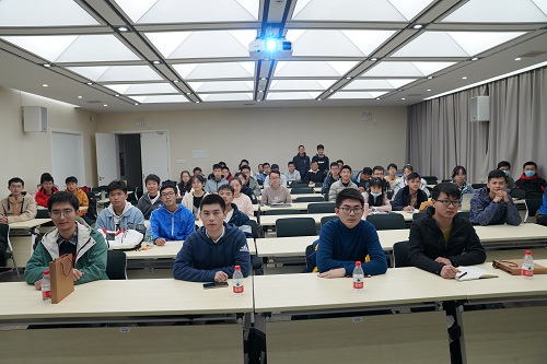 组委会邀请了李景昊,蔡智君,林子风,郭帅伟四位拥有丰富科研经验及卓越学习能力的同学担任决赛评委。决赛现场各个小组展开了激烈角逐。配合图文并茂、美观大方的PPT,选手们在台上流畅清晰的对各自的研究课题及论文进行了系统阐述,更有不少小组采用了全英文汇报的形式。汇报结束后,评委们对各小组的PPT和汇报内容进行了提问,同时也提出了相应的建议。现场思维碰撞,学术氛围浓厚。