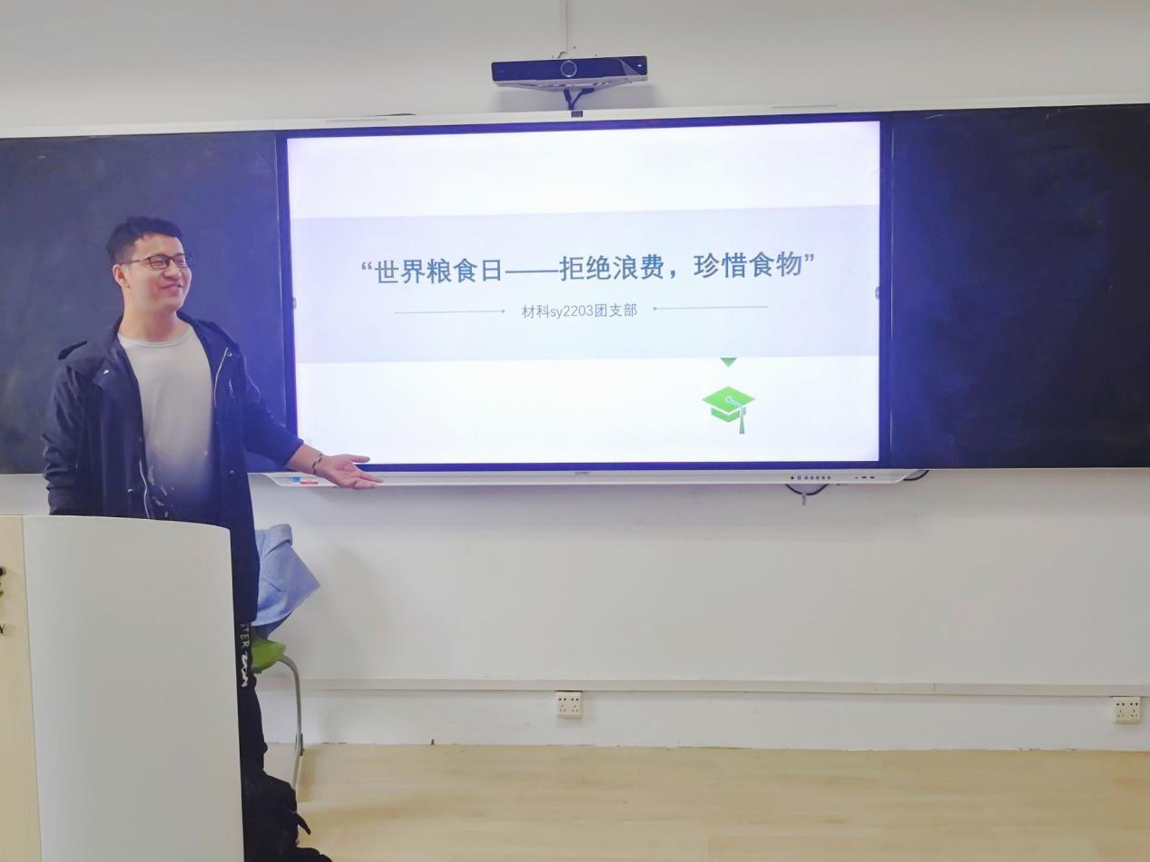 为响应联合国世界粮食日的号召,提高青年团员对粮食安全的重视,材科sy2203团支部于10月26日上午,成功开展了以“世界粮食日——拒绝浪费,珍惜食物”为主题的团日活动,材科sy2203团支部全体成员参与。